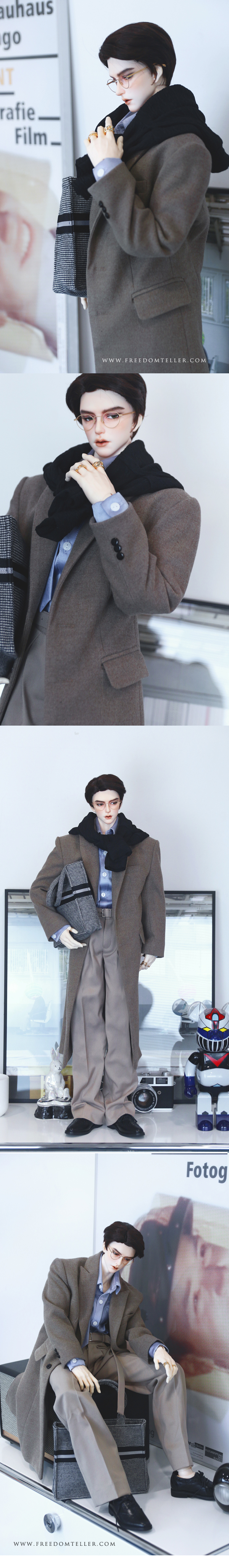 It is a simple silhouette with semi-double closure. It's crafted with an emphasis on sophisticated fit and tailoring. You could match shirts or knit wear together. Even wear it over a suit, it could create a nice style for your doll.