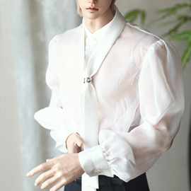 It's overfit & volumed shirts. We use see-through fabric w//creased finishing on surface. Soft & subtle fabrics are contrasted to solid jacket fabric.
