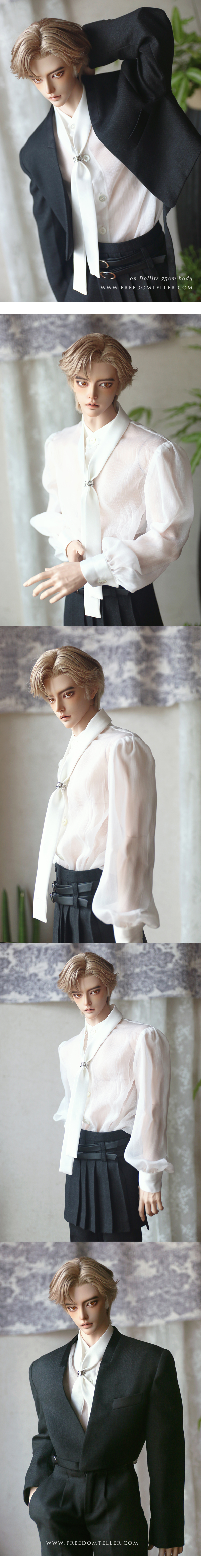 We added a long tie w/ self fabric, and metal ring to tie it. If the metal rings are run out, it could be replaced to similar ones. * Modeled on Dollits 75cm / RSDoll 76 body